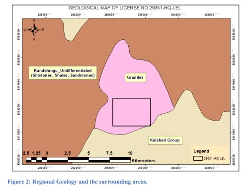 Quick Copper Mining Limited holds Large-Scale Exploration Licence No. 29051-HQ-LEL. The licence was applied for on 5 May 2021, granted on 17 June 2021 and is valid until 16 June 2028. The tenement covers approximately 1,497.78 hectares in Mufumbwe District, North-Western Province, and targets cobalt, copper, gold and iron ore. Quick Copper is advancing an early-stage copper exploration programme. The licence lies close to the Euro Kalengwa copper deposit, enhancing its prospectivity. Work to date includes soil geochemical sampling (185 samples), a ground magnetic survey and three shallow test boreholes. The programme identified three copper anomalies, the largest measuring about 1.3 × 1.0 km in the north-west. One borehole returned 500–600 ppm Cu before being terminated early, while the others returned 150–350 ppm Cu, confirming copper mineralisation and supporting further work. The licence renewal was approved at the 91st Mining Licensing Committee meeting on 8 October 2025. Quick Copper has engaged Tardis Mining Solutions to surrender the licence for endorsement by the Mining Cadastre Department so that the new expiry date may be recorded.